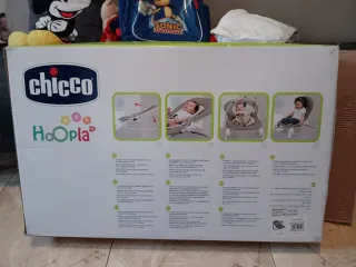 Hamaca para bebés de la marca Chicco, modelo Hoopla. Diseñada para ofrecer comodidad y entretenimiento. Usado 2 veces contadas, mi bebé sólo quería mis brazos. Si necesitas más as fotos porque de verdad te interesa la monto. Esta en su caja. - Asiento acolchado. - Barra de juegos con juguetes. - Diseño ergonómico.