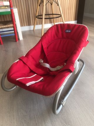 Preciosa sillita mecedora de Chicco para bebé, en color rojo qnaranjado. Está practicamente nueva, en muy buen estado, casi sin uso y es ideal para que el bebé se relaje y se divierta. - Incluye arco de juegos con juguetes colgantes. - Mecedora. - Tejido suave y acolchado. - Fácil de plegar y guardar.