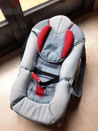 Hamaca balancín para bebés de la marca Chicco. Acolchada, color gris claro y rojo. Se entrega recién lavada. Incluye cinturón de seguridad ajustable. El respaldo se reclina en varias posiciones. Modo balancín o fijo. Con asas para poder transportar de un lado a otro de la casa con el bebé tumbado. Es muy práctica. Entrega en zona metro Arturo Soria.