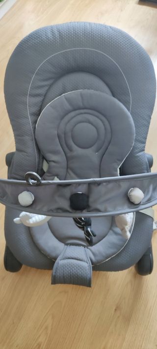Hamaca para bebé de la marca Chicco en color gris. Cuenta con un diseño moderno y un cojín reductor para mayor comodidad. - Cojín reductor con estampado. - Estructura gris. - Cintas de seguridad.