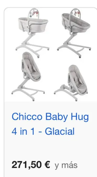 🔹Vendo Chicco Baby Hug 4 en 1 original, color gris, totalmente nuevo sin uso, en estado impecable. Es un producto 4 en 1, muy práctico y cómodo: 🛏️ Cuna / moisés 🪑 Hamaca 🍽️ Trona 🚼 Sillita elevable ✔️ Ajustable en altura ✔️ Arnés de seguridad ✔️ Acolchado y funda en perfecto estado ✔️ Muy estable y fácil de mover ✔️ Ideal desde recién nacido ✔️ Tiene luces y canciones ✔️ Marca Chicco, calidad garantizada. Se vende por no haberse utilizado nunca.