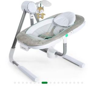Hamaca columpio para bebés de la marca Ingenuity. Con funcion balanceo de varias intensidades y varios tipos de musica y ruido blanco. Diseñada para ofrecer comodidad y entretenimiento. Se entrega con caja original. - Asiento acolchado con suave tejido. - Incluye un peluche colgante. - Estructura robusta y segura.
