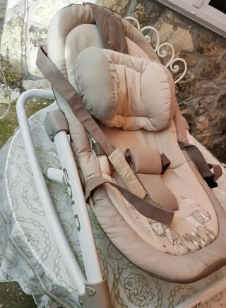 Hamaca mecedora para bebés marca INGENVITY con función de hamaca y vibración para el sueño del bebé. Todo funcionando correctamente, se incluyen pilas a la mitad de su vida útil. Cinturón incorporado para evitar caidas o vuelcos. Facil de desmontar y transportar, el asiento se extrae para su lavado. Se entrega recién lavada. - Diseño acolchado y confortable, desmontable con facilidad - Hamaca con función de vibración de asiento - Estructura resistente y segura. - Tonos neutros y suaves.