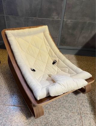 Mecedora infantil de Ikea, modelo Hamaca infantil. Perfecta para los más pequeños. - Estructura de madera curvada. - Funda de tela acolchada. - Cojín para la cabeza.
