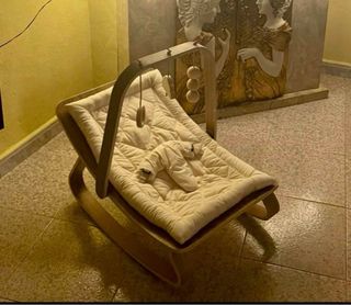 Vendo hamaca balancín para bebé, fabricada en madera natural con un diseño nórdico moderno y elegante. Es ideal para que el bebé descanse o se balancee suavemente. Características: Material: Estructura de madera de alta calidad, muy resistente y estable. Higiene: El cojín textil es totalmente desenfundable y lavable a máquina, muy fácil de mantener limpio. Confort: Tejido suave con estampado delicado y arnés de seguridad integrado. Estado: En perfecto estado, poco uso y bien cuidada. Detalles de la venta: Precio: 70€. Ubicación: Recogida en Aguadulce (Almería). No dispongo de transporte ni realizo envio