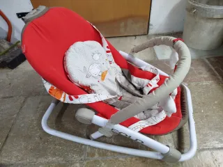 Hamaca mecedora de la marca Jane, modelo Fold. Es cómoda y fácil de transportar. - Estructura de aluminio, pesa poco. - Asiento acolchado con diseño colorido. - Barra de seguridad. - Arnés de sujeción.