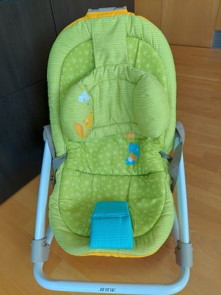 Hamaca de la marca jané fold . Tiene un cojín en forma de león, 3 juguetes, cinturón ajustable y freno. Está usado pero en buen estado. Ideal para que el bebé esté controlado mientras te duchas o haces cosas de casa, también para hechar la siesta.