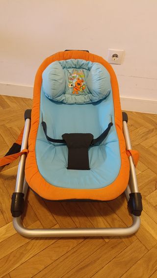 Hamaca para bebé de la marca Jané, modelo Fold. Está en buen estado y es perfecta para que el bebé se relaje. - Color azul y naranja. - Incluye reductor para recién nacidos. - Mecedora.