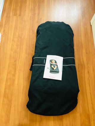 La hamaca Babybjörn muy manejable y lijera y que ocupa poco espacio plegada. Se puede utilizar hasta los 9kg. Esta en buen estado y la funda es lavable.