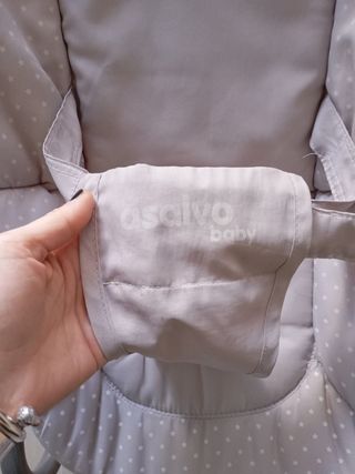Hamaca para bebé de la marca Asalvo. Es cómoda y acolchada, con un diseño moderno. - Tejido suave con estampado de topitos. - Asiento reclinable. - Incluye cinturón de seguridad.