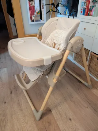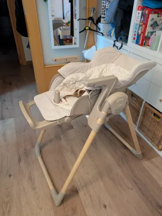 Tona Jané Mila comprada en 2022. Está en excelente estado, ya que solo ha tenido un uso real de 12 meses (6 meses con cada uno de mis hijos). Muy bien cuidada y limpia. Características: • Evolutiva: Se usa desde los 0 meses (como hamaca) hasta los 3 años. • Respaldo reclinable ideal para siestas post-comida. El reposapiés también se regula. - Altura ajustable para cualquier mesa. - Doble bandeja extraíble y lavable. (La parte gris se quita.) - El reductor es una funda reversible (estrellas/rayas) -Plegado compacto (no ocupa nada).