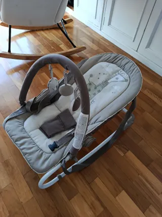 Vendo hamaca evolutiva Jané Evolution en perfecto estado. Es un modelo muy versátil que acompaña el crecimiento del bebé, sirviendo primero como hamaca y luego como silla infantil (hasta los 18 kg / aprox. 3 años). Características principales: 2 en 1: Hamaca para recién nacido y silla para niños más grandes. Funciones: Sistema de vibración relajante y varias melodías incorporadas para calmar al bebé. Reclinado: Respaldo ajustable en 3 posiciones para dormir, descansar o jugar. Plegado: Muy compacto, ideal para guardar o transportar. Higiene: El tapizado es acolchado, muy cómodo y totalmente desenfundable para lavar en lavadora