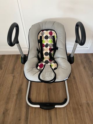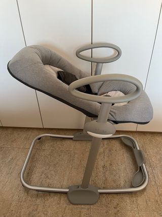 Hamaca con diferentes reclinados y alturas. Tiene un fijador que evita que se balancee. Muy útil cuando estas en la mesa porque el bebe lo tienes a tu misma altura. Esta en buen estado.