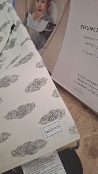 Hamaquita muy bien cuidada, con funda original de la marca Babyjorn y otra funda de Minicotton, con un diseño de nubes. Todo es lavable. Están impecables tanto hamaca como fundas, incluida su caja de embalaje original. - Ergonómica y con balanceo natural. - Apta para bebés de 0-2 años. - Soporta entre 3.5 y 13 kg. - Fácil de plegar y transportar.