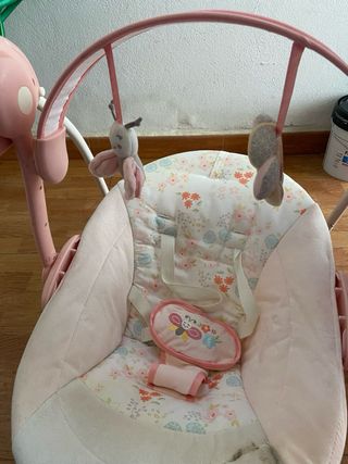 hamaca columpio balanceo bebe color rosa, tiene musica relajante para bebes tiene programador de tiempo y distintas posiciones de balanceo tiene una mancha pequeña que se aprecia en la foto de estar guardada pero se entrgaria totammwnte limpio