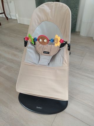 Hamaca y barrita de actividades BabyBjorn. La hamaca tiene un diseño ergonómico de tres posiciones con su balanceo natural que calma al bebé y permite que juegue o descanse cerca de ti. Los productos se venden en sus cajas originales. Se incluye una funda más.