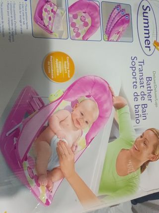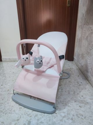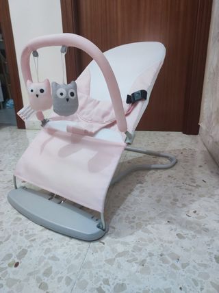 Bonita hamaca ergonómica, segura y divertida para el bebé. COLOR: Rosa claro TEJIDO: @ Malla (transpirable) * Ergonómica * Balanceo natural *3,5- 13kg, desde 53cm * De O a 2 años Tiene 6 meses y de uso ni un mes. Es muy practica ,ya que plegada ocupa muy poco y te la puedes llevar donde quieras .