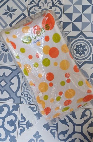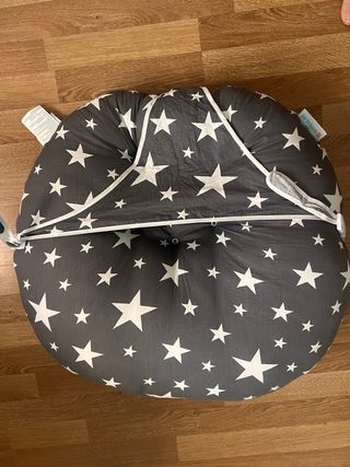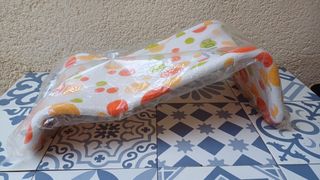 Cojín/hamaca de bebé suave con un diseño de rayas azules y blancas de la marca Pulguinhas. - Diseño de rayas azules y blancas. - Cierre de clip azul. - Multifunción: desde el nacimiento hasta sus primeras lecturas (5 años) Presenta alguna mancha de color muy claro (ver fotografías).