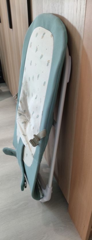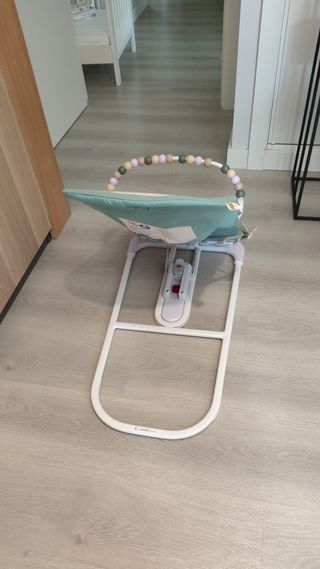 Hamaca para bebé Jané Baluu en perfecto estado. Es de color verde menta y tiene un diseño muy bonito. - Ideal para recién nacidos, hasta los 9kg. - Estructura ligera y fácil de plegar. 3 posiciones. - Incluye barra de juegos con juguetes. Medidas (plegada) 85 x 43 x 12 cm