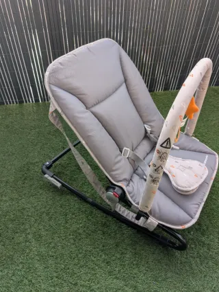 Hamaca balancín de la marca Bebeconfort en color gris. Ideal para los más pequeños. - Diseño acolchado para mayor comodidad. - Barra de juegos con elementos colgantes. - Cinturón de seguridad de 3 puntos.