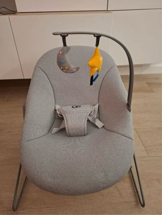 Hamaca para bebés en color grisáceo. Es cómoda y segura para los más pequeños. Está impecable como se observa en fotografías - Diseño acolchado. - Arnés de seguridad. - Base antideslizante.
