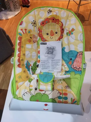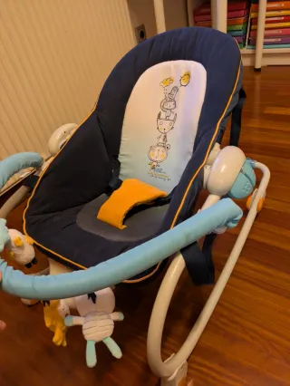 Hamaca para bebés con muy poco uso con un divertido diseño de animales marinos y selva. Es cómoda y segura para los más pequeños y con música. - Diseño reversible con dos estampados. - Barra de juegos extraíble con juguetes. - Cinturón de seguridad de 3 puntos. - Patas antideslizantes.