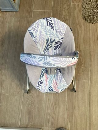 Preciosa hamaca para bebé de la marca Bright Starts, en tonos rosas y con estampado floral. Ideal para que el bebé se relaje y se divierta. - Incluye arco de juegos con juguetes colgantes. - Asiento acolchado y cómodo. - Estructura ligera y fácil de transportar. - Perfecto estado. No hago envio Funciona con tres pilas no incluidas
