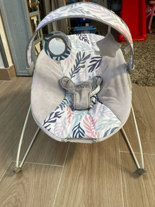 Su diseño 2 en 1 te permite alternar entre un asiento fijo o un balancín. Cuenta con 5 configuraciones de balanceo, además de vibración y balanceo automático.... Cuenta con un motor silencioso, más de 12 melodías y 4 sonidos de la naturaleza. La almohadilla del asiento de felpa y el reposacabezas extraíble son fáciles de limpiar También es plegable y tiene las patas antideslizantes. Tiene un poquito hundidos 2 botones como se puede apreciar en las fotos ,pero funcionan perfectamente.