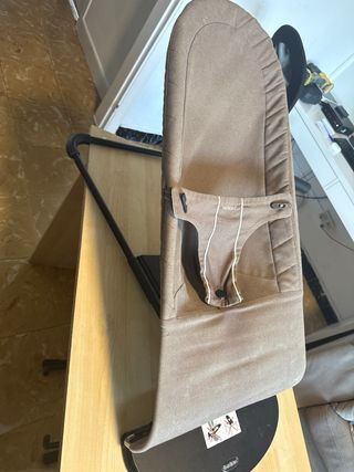 Hamaca BabyBjörn en color beige, en buen estado. Se quita la funda para poder lavar y se pliega la estructura Incluye un juguete de madera para que juegue el bebé y entrenar la movilidad. Es cómoda y práctica para el descanso del bebé. - Color beige. - Incluye juguete. - Cómoda y práctica.