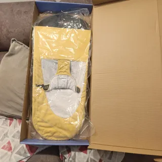 Hamaca para bebé de la marca BabyBjörn. - Color amarillo y gris. - Diseño ergonómico.