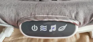 Hamaca para bebé con un diseño moderno y acolchado. - Tejido suave y confortable. - Colores gris y blanco. - Incluye arco de juegos con peluches.,tiene alguna mancha que no se va pero está en buen estado y lo electrónico funciona perfectemte