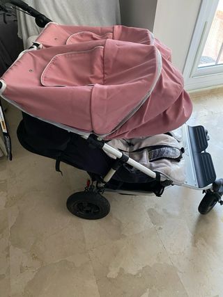 Se vende carro gemelar Mountain Buggy Duet con textil Tititnins en tonos rosa. Está en muy buen estado y listo para usar. También incluyo el textil y capotas originales que está sin estrenar en color gris. Solo venta en persona. Vendo aparte también los dos capazos convertibles en hamacas.