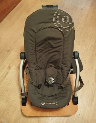 Hamaca Concord Río, perfecto estado, muy poco uso. Alta gama, estructura muy elegante de madera y aluminio, segura y ligera. Muy cómoda por su adaptador para los más pequeños, tejidos lavables, posibilidad de dejarla con balanceo o fija, arneses y asas para transportarla de un sitio a otro de la casa con total seguridad incluso si el bebé se ha quedado dormido. Varias posiciones, plegado fácil. La funda para transportarla está completamente nueva porque nosotros tuvimos dos (nos gustó tanto que compramos otra) pero esta estuvo fija en segunda residencia. Más datos en fotos. Entrega el León o Madrid.