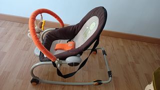 Hamaca para bebé Jané Evolution, en buen estado. Con función de vibración, música o ambas a la vez. Precio original 75€. Muy poco uso. - Modelo Evolution de Jané. - Incluye arco de juegos. - Color marrón y rojo.