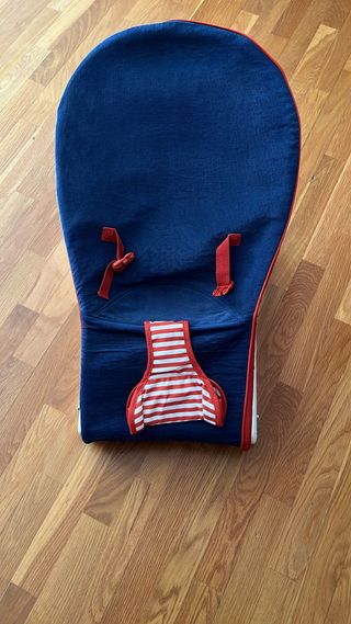 Hamaca para bebé modelo TOVIG de Ikea (descatalogada). - Color azul marino con rayas rojas y blancas. - Funda lavable - Totalmente plegable, ocupa muy poco espacio, muy cómoda para guardar y / o para viajar