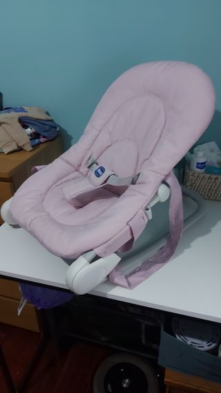 Hamaca de bebe rosa, marca Chicco. Recién lavada y en perfecto estado. Usado muy poco tiempo porque mi bebe prefería estar en mis brazos