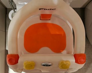 Hamaca de baño para bebés de la marca Jane, modelo Fluid. - Diseño ergonómico y seguro. - Materiales de alta calidad. - Color blanco y naranja.