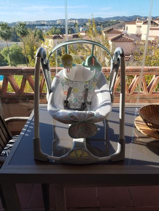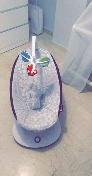 Ésta nueva. Poco uso, se ve en las imágenes. Le he hecho las fotos al sol para que se vea que no tiene ninguna mancha. Tiene varias marchas de movimiento, varias canciones relajantes para que tú bebé se relaje. Se mece sola.