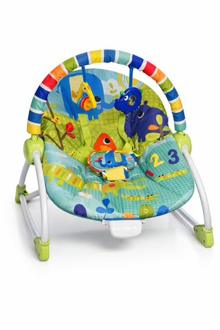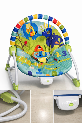 Ajustable en tres posiciones para mayor comodidad Incluye arco de juegos con dos peluches Vibraciones relajantes, sonidos naturales y melodías Plegable y fácil de guardar Colores neutros válido para niño y niña El asiento es ajustable en tres posiciones, ideal para relajarse, jugar o dormir la siesta. El arnés de 5 puntos mantiene a tu bebé seguro, mientras que el arco de juegos desmontable con dos peluches estimula sus sentidos y diversión. Con vibraciones calmantes, sonidos de la naturaleza y melodías, cada momento en la hamaca es una alegría. Cuando termines de usarla, se pliega fácilmente para guardarla sin ocupar espacio.
