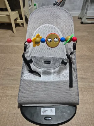 Hamaca ergonómica para bebés de la marca BabyBjörn. Diseñada para ofrecer comodidad y seguridad. - Tejido suave y transpirable. - Arnés de seguridad. - Base antideslizante. - Se ha roto de un lado por el uso, pero puede aguantar mucho peso. Se sienta mi hija de 3 años y aguanta sin problema. La tela es muy muy resistente.