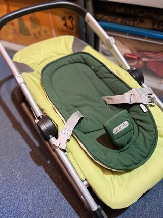 Hamaca para bebé Recaro en perfecto estado. Ideal para que el bebé descanse cómodamente. - Ligera y fácil de plegar. - Tapicería verde y beige. - Arnés de seguridad incluido.