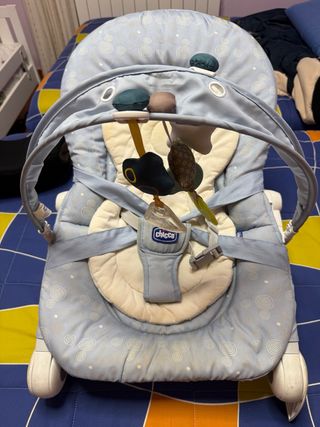 Preciosa hamaca para bebé de la marca Chicco. Está en buen estado y es perfecta para que el bebé se relaje y se divierta. - Incluye arco de juegos con juguetes. - Tejido suave y acolchado. - Estructura robusta y estable. - Fácil de plegar y guardar.