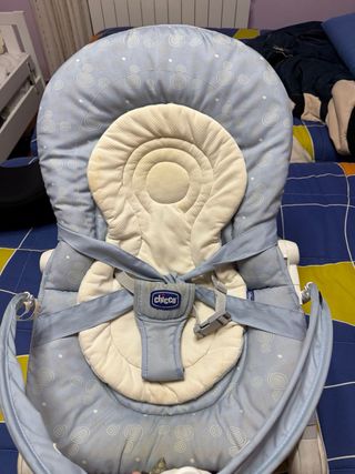 Hamaca para bebé de la marca Chicco, en color gris. Está en buen estado. - Ideal para bebés de hasta 9 kg. - Tejido suave y acolchado. - Arnés de seguridad de 5 puntos. - Fácil de limpiar.