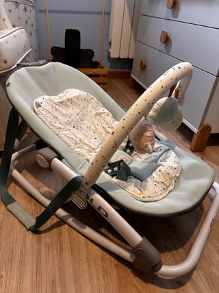 Hamaca de bebé como nueva, usada durante los dos primeros meses de la bebe. Nos funcionó muy bien cuando tenía muchos cólicos. * No tenemos la caja y le falta una bola pero de resto esta todo como nuevo. La hamaca consta de 5 velocidades, tambien cuenta con musica (latidos del corazón, ruido blanco...). Se puede conectar a través de bluetooth para que conectes la musica que quieras y se puede manejar a traves de una app.