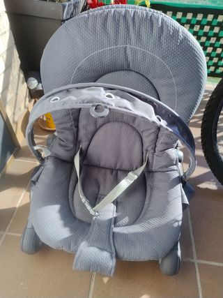 Usada 1 mes porque era para una segunda residencia. Hamaca para bebé de la marca Chicco. Es cómoda y acolchada para el descanso del bebé. - Color gris oscuro. - Acolchado extraíble y lavable. - Arnés de seguridad de 5 puntos. Tiene varias posiciones y es hasta los 4 años.