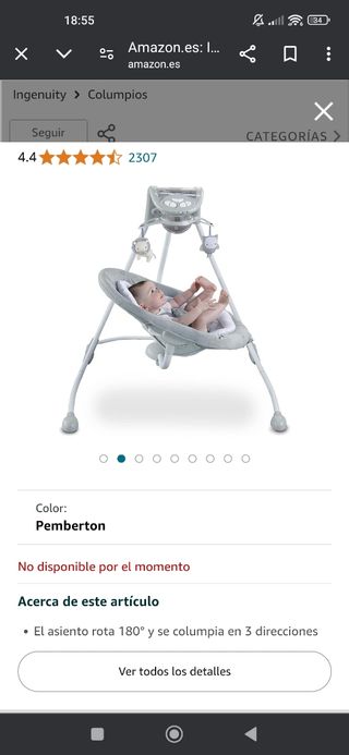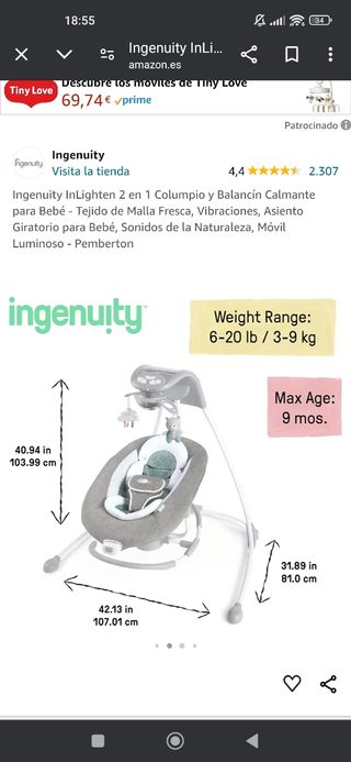 Vendo hamaca eléctrica y musical para bebés, nunca usada y en su caja original comprada en Drim.