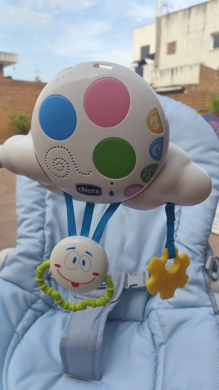 Preciosa hamaca para bebé de la marca Chicco, en buenas condiciones. Es ideal para que el bebé se relaje y se divierta. - Incluye móvil musical con luces y canciones. - Hamaca reclinable. - Tejido suave y acolchado. - Función de vibración. - También incluye 2 patas para que la hamaca quede fija. - Tiene varias posiciones de altura reclinables