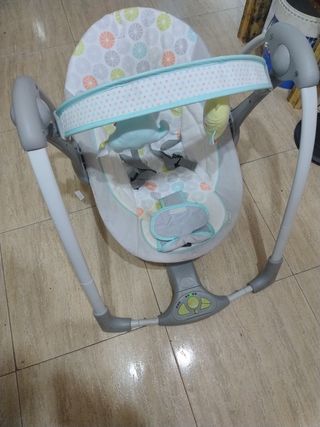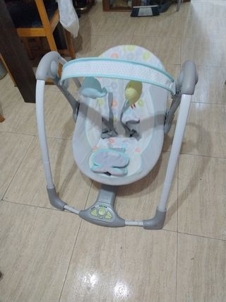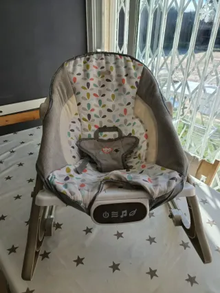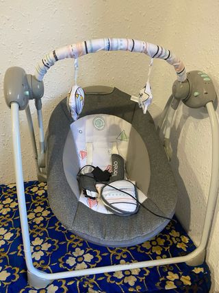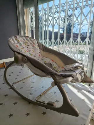 Hamaca mecedora Joie Sansa en perfecto estado. Diseñada para el confort y el entretenimiento del bebé. Recién lavada. Sólo le falta el motor vibratorio que dejó de funcionar de la tercera foto, pero la función de la base de moverse y balancearse + la música funciona perfectamente El asiento gira 90° sobre su base para cambiar la dirección de todos los movimientos y personalizar el efecto tranquilizador Ofrece a tu pequeño la máxima relajación gracias al cómodo reclinado en 3 posiciones El balancín de movimiento múltiple se mece de lado a lado, se desliza de delante atrás o combina ambos, para ofrecer una opción de lo más completa
