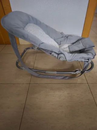 Hamaca para bebé en color gris, ideal para recién nacidos. (Mi mayor se sentó en ella y no bloquea a media altura, a partir de unos 50 grados si bloquea o totalmente tumbada) - Acolchado suave. - Arnés de seguridad. - Estructura resistente.