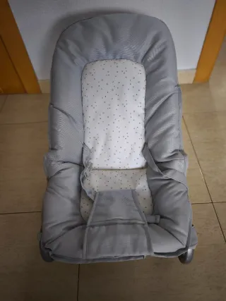 Hamaca para bebés con un diseño inspirado en el estilo Babybjorn. Se encuentra en buen estado. - Estructura metálica en perfectas condiciones. - Asiento acolchado de tela, se puede substituir por uno nuevo.